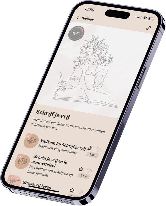 Schrijf je vrij is de eerste module in Feelia. Hierin maak je je zonder forceren een dagelijkse schrijfroutine eigen die jouw stresslevel stelselmatig verlaagt.